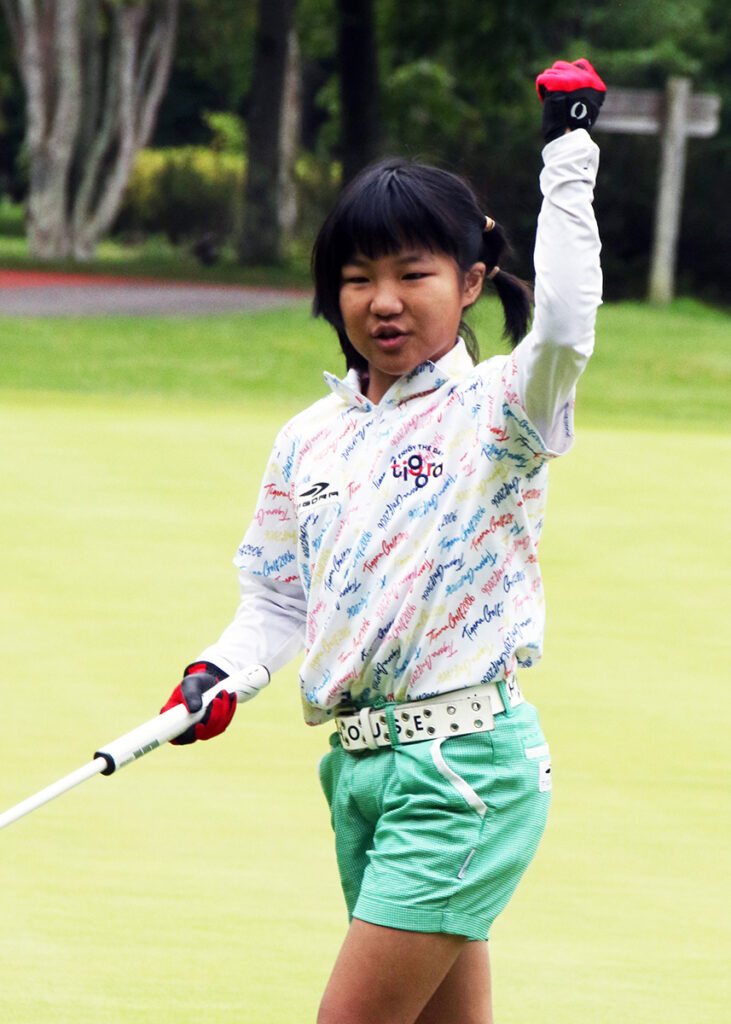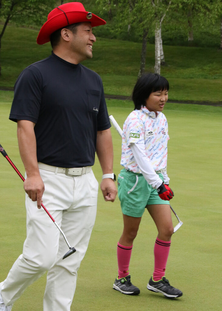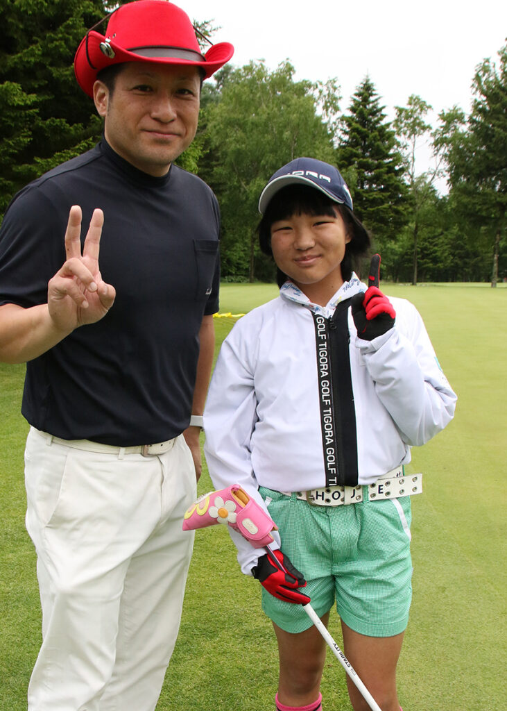 PS. 優勝の瞬間のガッツポーズを弥勒ちゃんのお父さんが気に入ってくれて、スポンサーのゴルフ5の広告に使いたいというので、自分かテルリン工房の名前を入れてくれれば宣伝にもなるので入れてもらいましたが・・・残念なことに、ガッツポーズ手の先、ゴルフ5さんなんで切っちゃたの?でした・・・。自分的には、バーディー入れ替えした瞬間の方が笑顔が可愛くて、ゴルフ5ロゴも入っているので宣伝的には、カメラマンとしては、この写真の方が良かったような気がします。